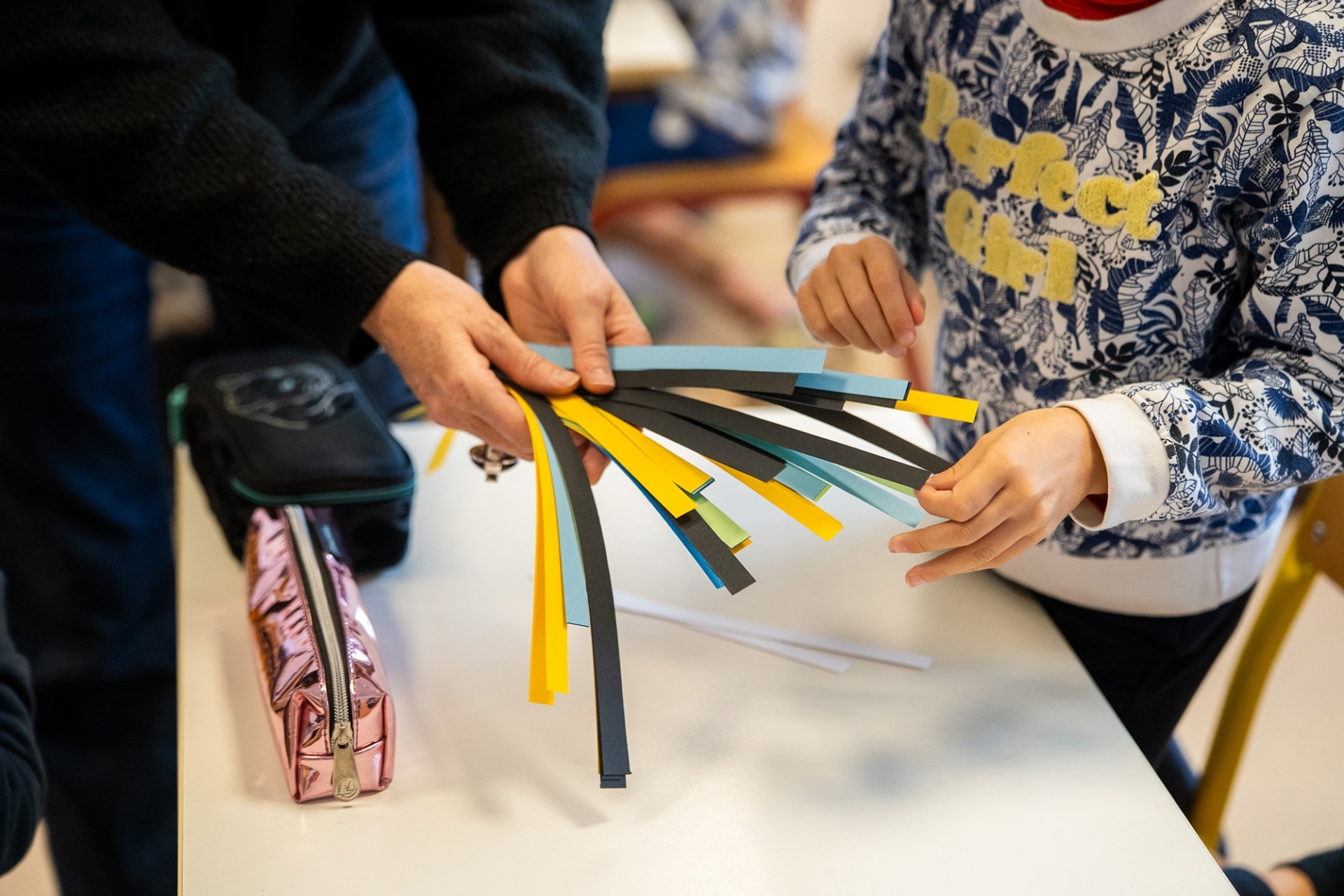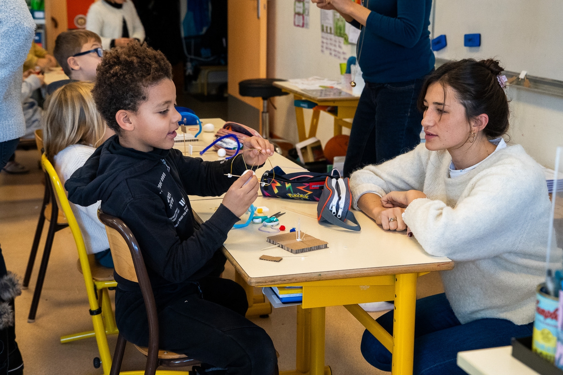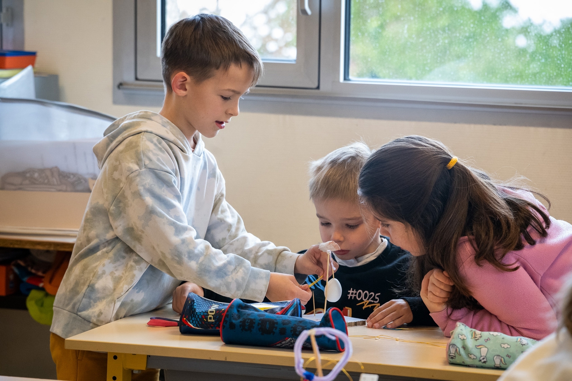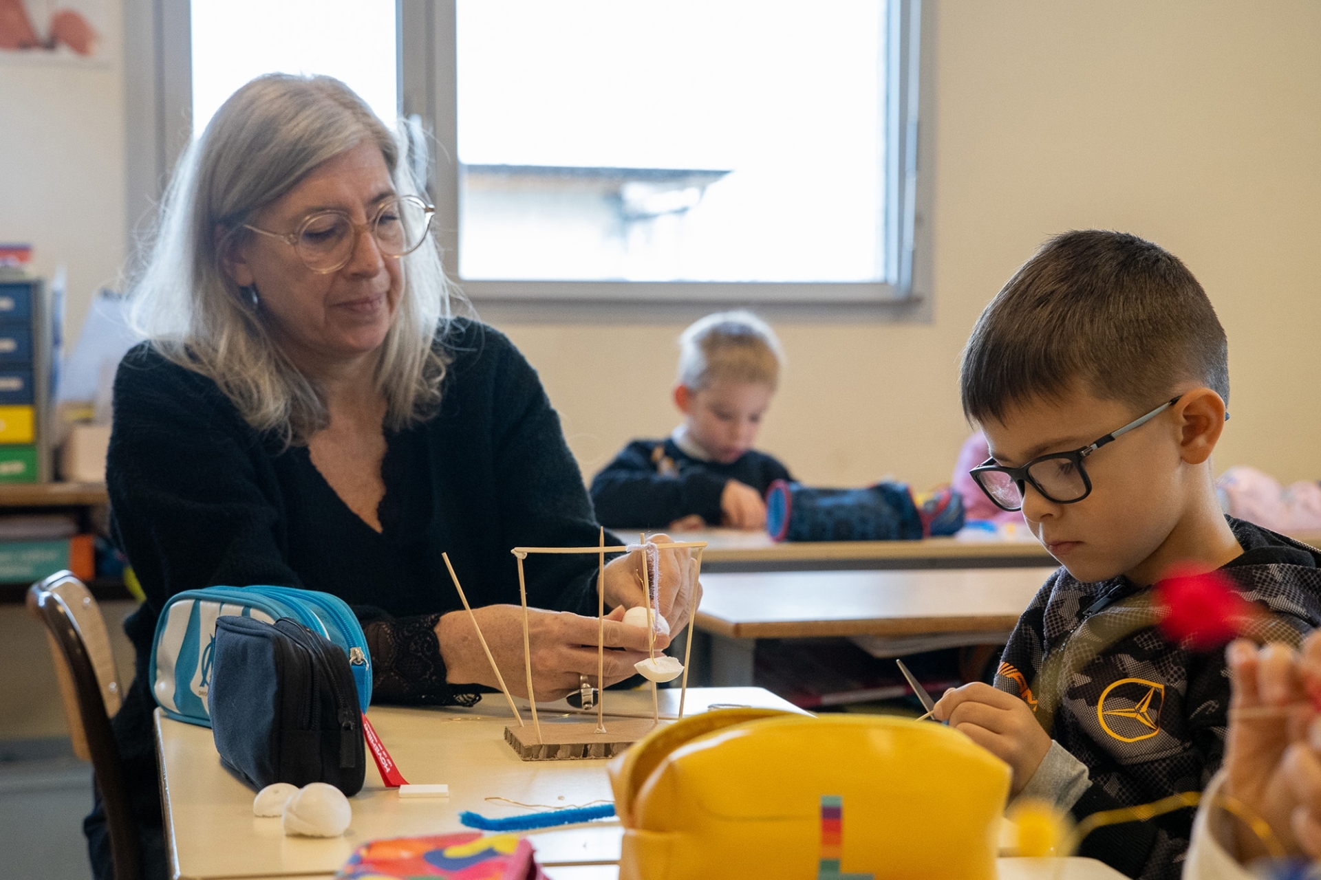 Les enfants ont pris le temps de chercher, d’imaginer et d’inventer des structures en équilibre, d’abord en 2D, puis en 3D.