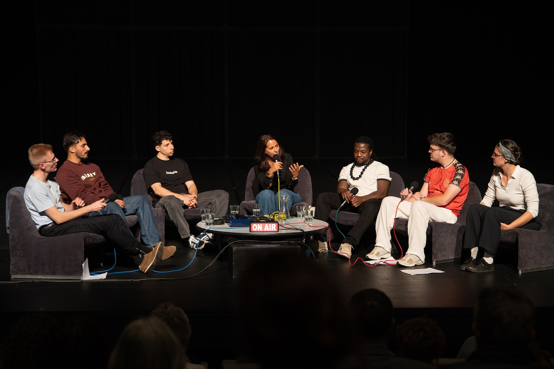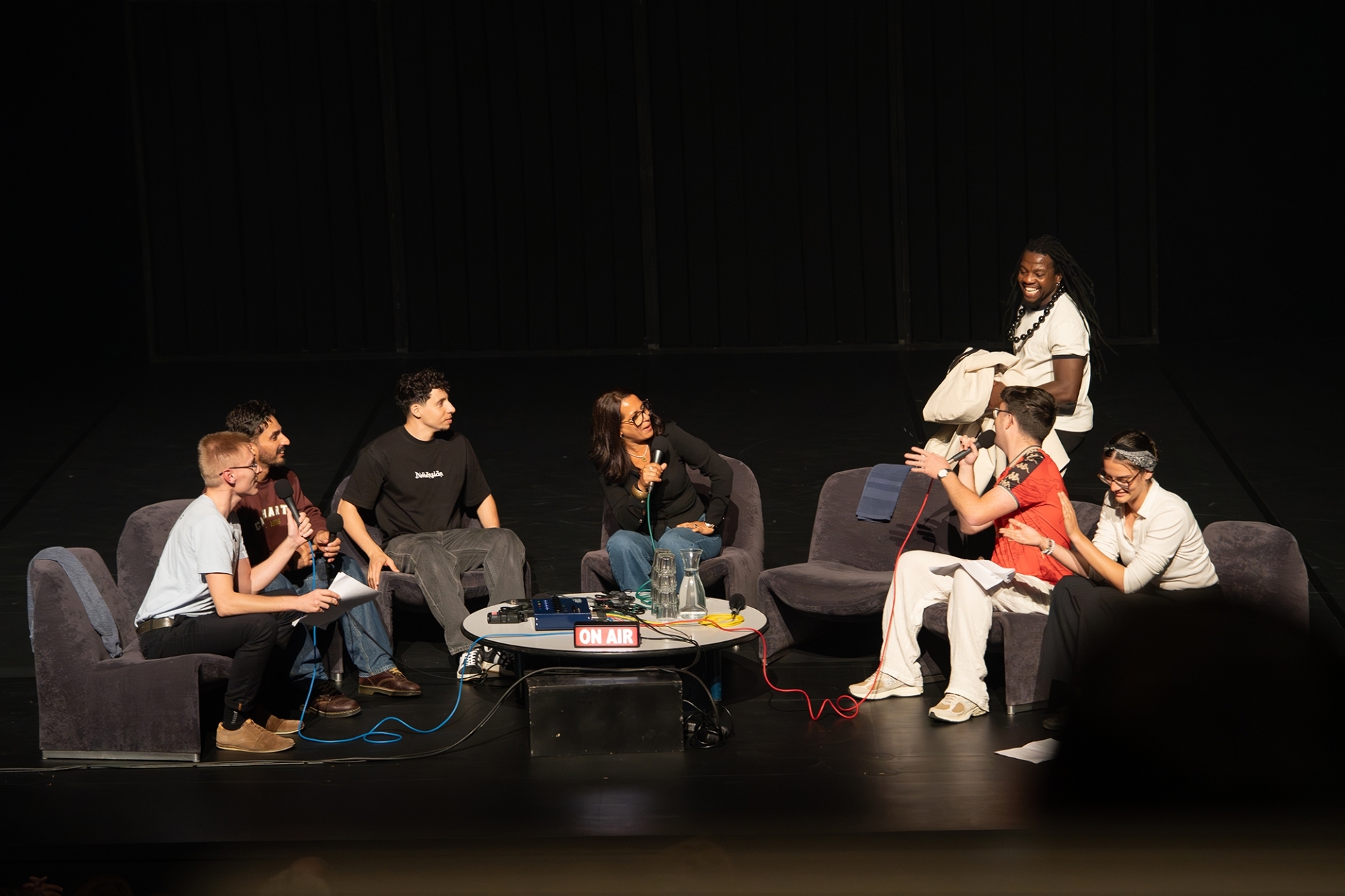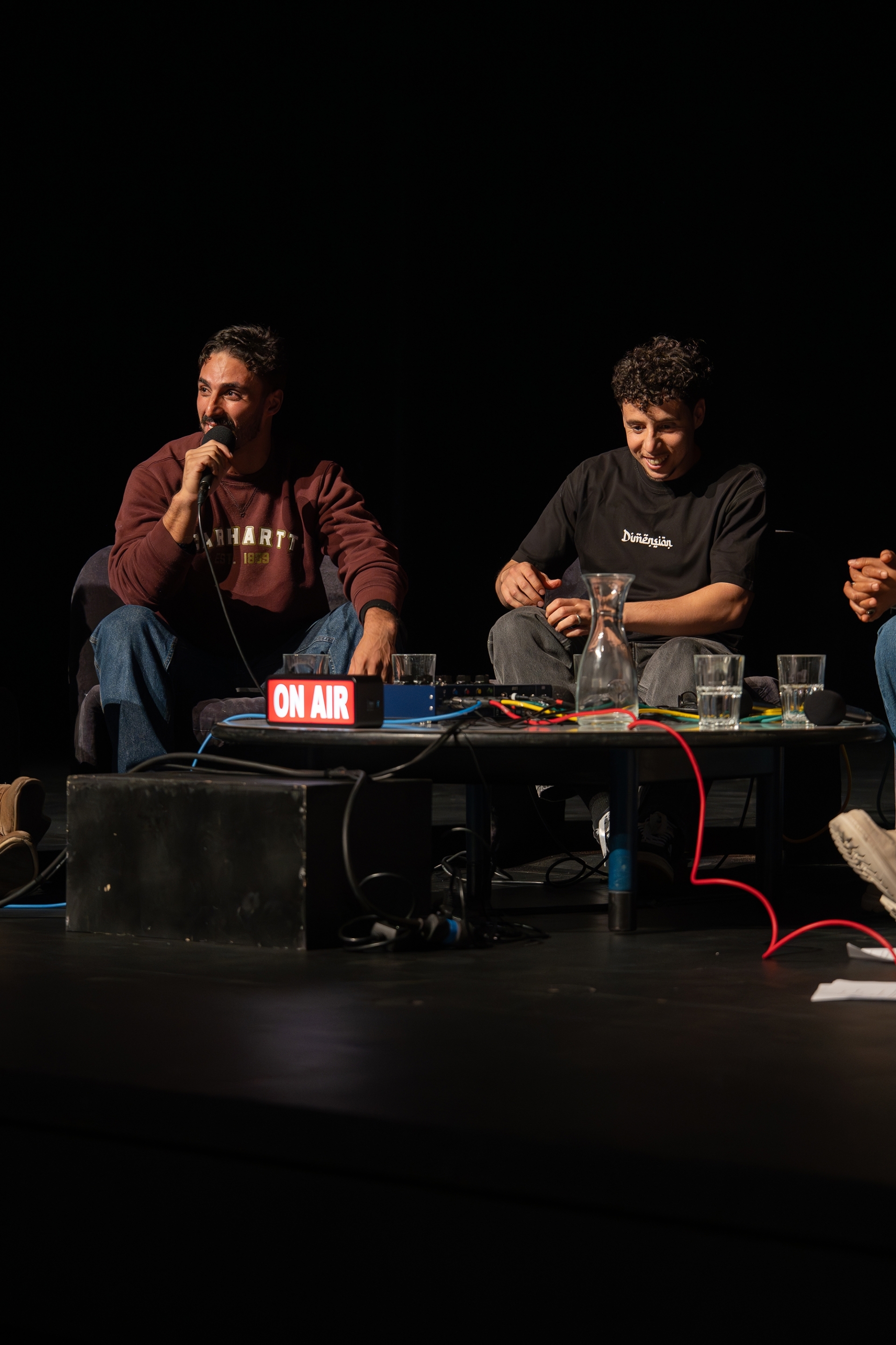 Nouvel épisode à l'écoute, le bord-radio autour du spectacle Ka-in du Groupe acrobatique de Tanger et Raphaëlle Boitel. La discussion a réuni Sanae El Kamouni, directrice du groupe et assistante à la mise en scène, Hamza Naceri et Youssef El Machkouri, acrobates et porteurs, et Hamidou Aboubakar Sidiki, danseur.