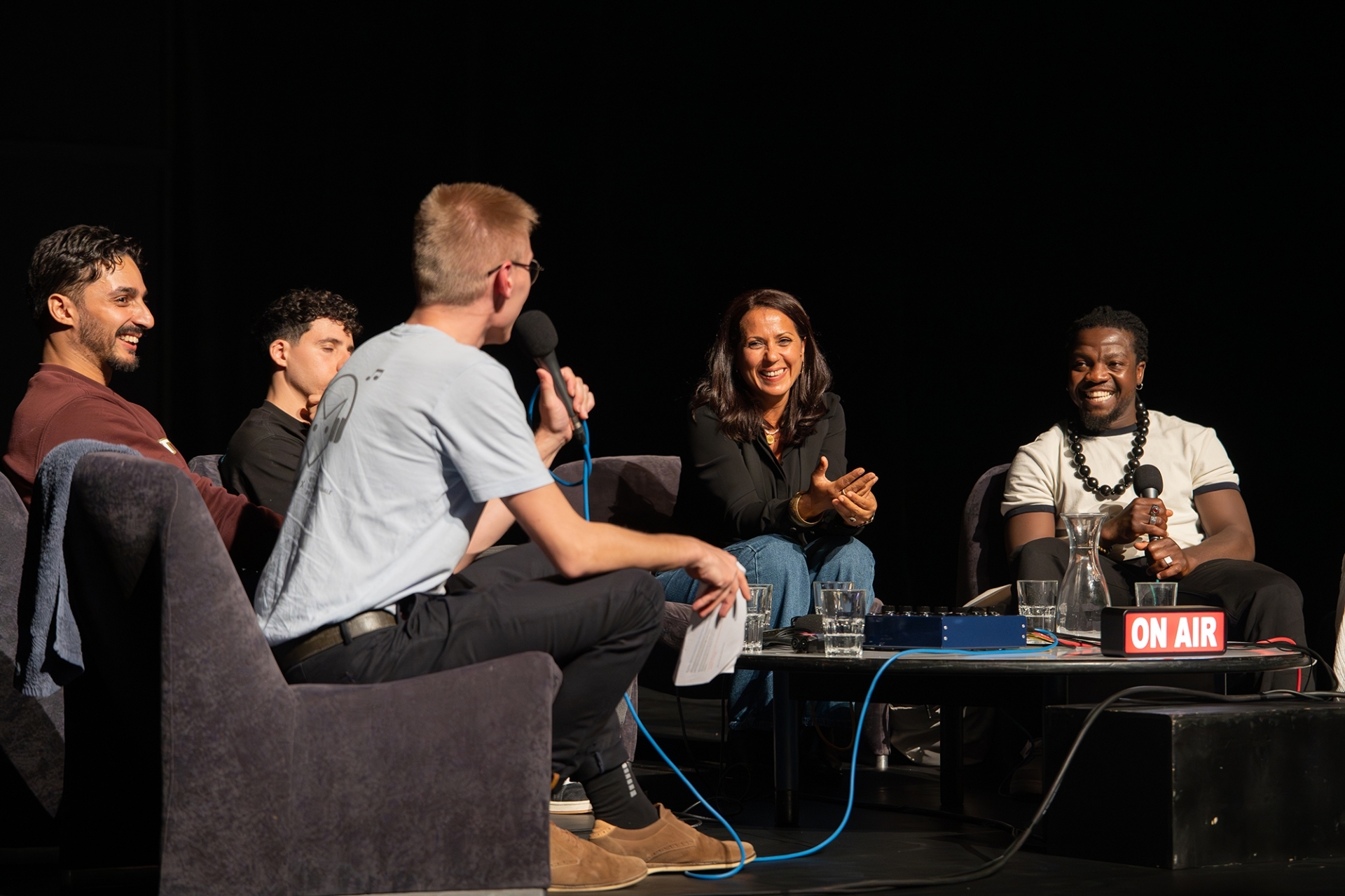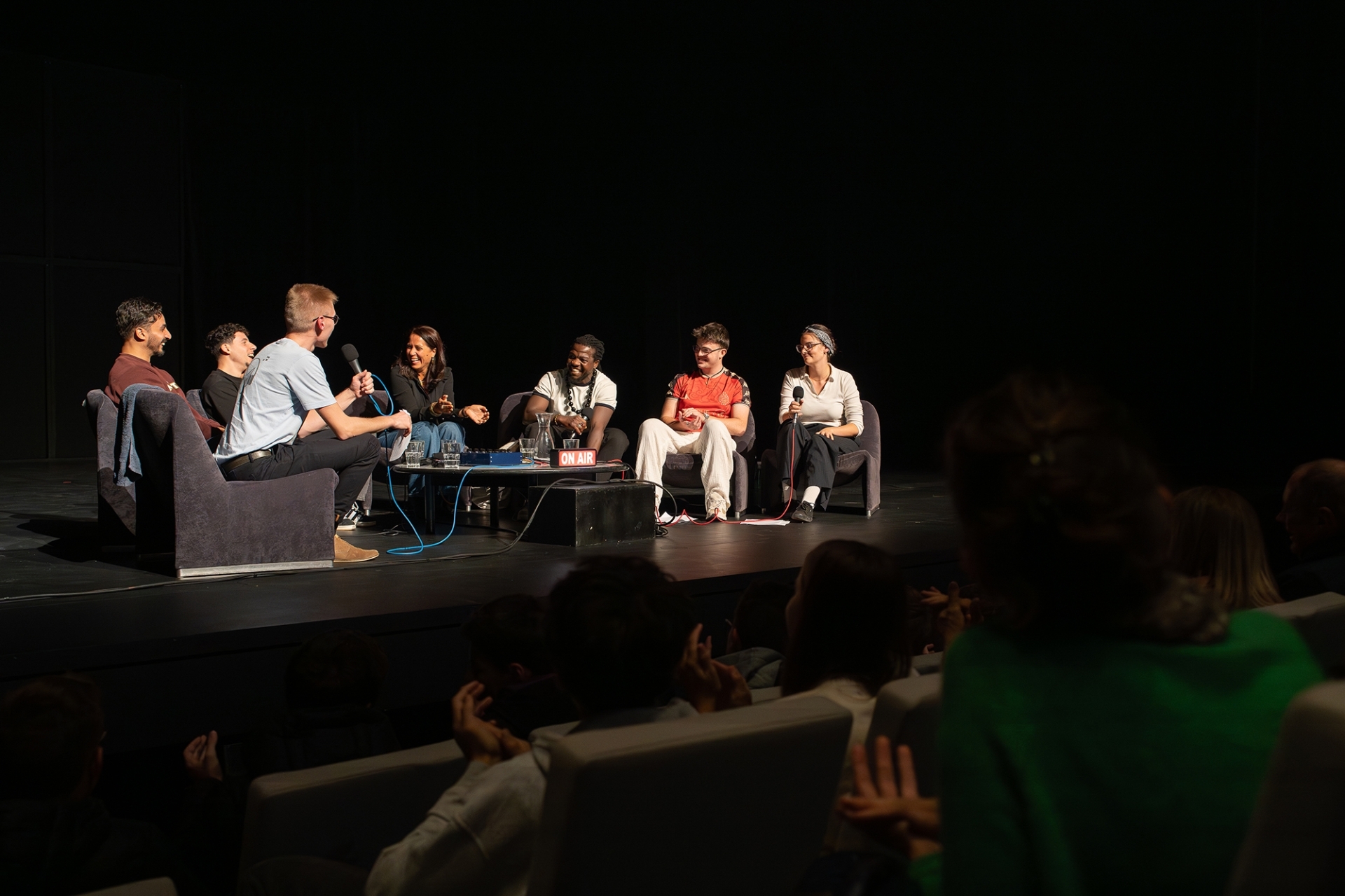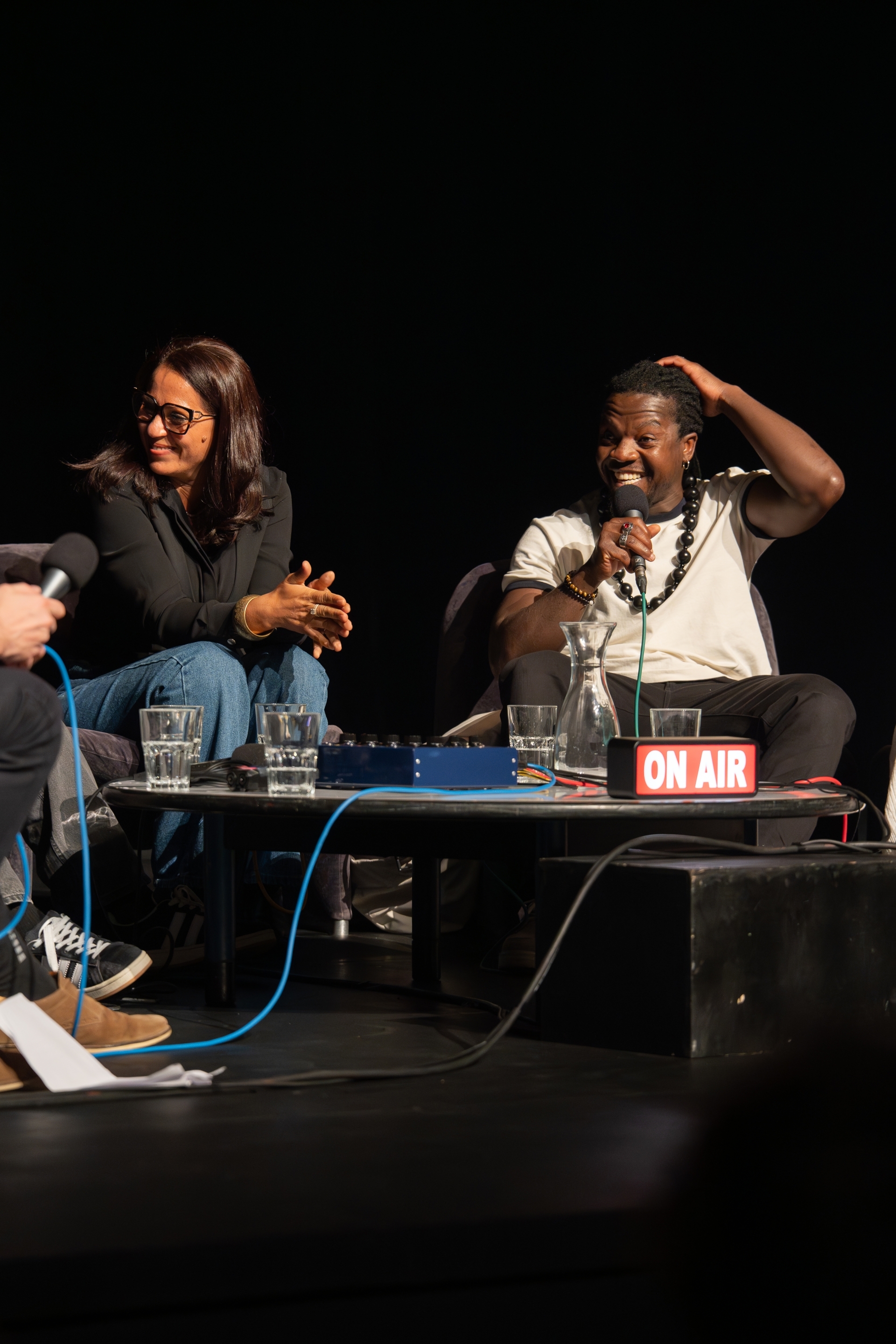 Nouvel épisode à l'écoute, le bord-radio autour du spectacle Ka-in du Groupe acrobatique de Tanger et Raphaëlle Boitel. La discussion a réuni Sanae El Kamouni, directrice du groupe et assistante à la mise en scène, Hamza Naceri et Youssef El Machkouri, acrobates et porteurs, et Hamidou Aboubakar Sidiki, danseur.